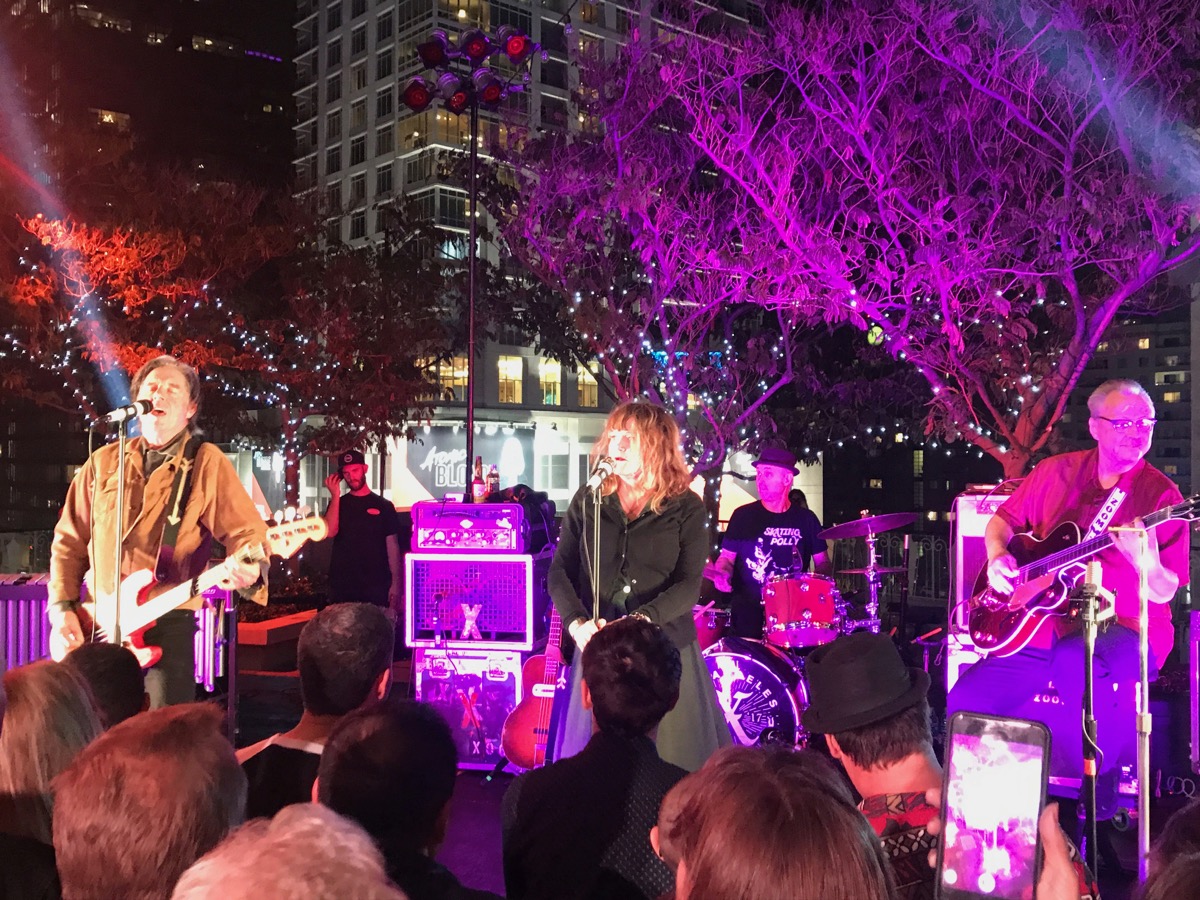 After the 45-minute long Q&A session finished, that freedom was quite evident when all four band members played a 17-song set of some of their most popular material on the roof of the Grammy Museum. Selections included Nausea, Johnny Hit and Run Paulene, the Hungry Wolf and finally Soul Kitchen, a cover from another well-recognized Los Angeles band, The Doors. The instruments were amplified, a rare departure from the museum’s usual acoustic shows, which generally take place on the Clive Davis Q&A stage below. After watching dozens of important bands play at the Grammy Museum, I must admit that this was the most exciting and finest organized event I’ve attended here. Illuminated and set against the panorama of L.A.’s bright lights and growing skyscrapers, the choice of backdrop could not have been more fitting for showcasing X’s 40-year career. The stage and its elegant bar, though light years in time travel from the dirty, beer-soaked dives of the band’s youth, symbolized just how much both X and the surrounding city of Los Angeles have essentially grown up. Time may change all things, but it’s also been said that time is on our side.