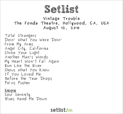 And yet through it all, you look around the Fonda and somehow, while the quantity has blown up, the quality of the fan has maintained its integrity. Regardless of age and background, whether pretty people, music geeks, elder hipster elites, or some combo of the above, you get the feeling that everyone at a Vintage Trouble show really knows music. It’s an intelligent music fan. And I don’t mean snotty or judgmental. Farthest thing from it. If you’re at the show, you’re an insider bearing witness to something special; but as a Troublemaker, you’re a member of a club that by its very nature wants EVERYONE to be a part. Because the VT vibe and the community it creates is all-inclusive. That said, however, this brand of music, a brand so instinctively accessible, does seem to attach to a more dialed-in listening public. Because on some level, conscious or subconscious, you have to get that it’s not necessary to dismantle the past to move into the future. You understand that a faithful re-exploration of the moment when soul and rock intersect is more than homage, it’s an open door to realizing a massive pool of untapped potential.