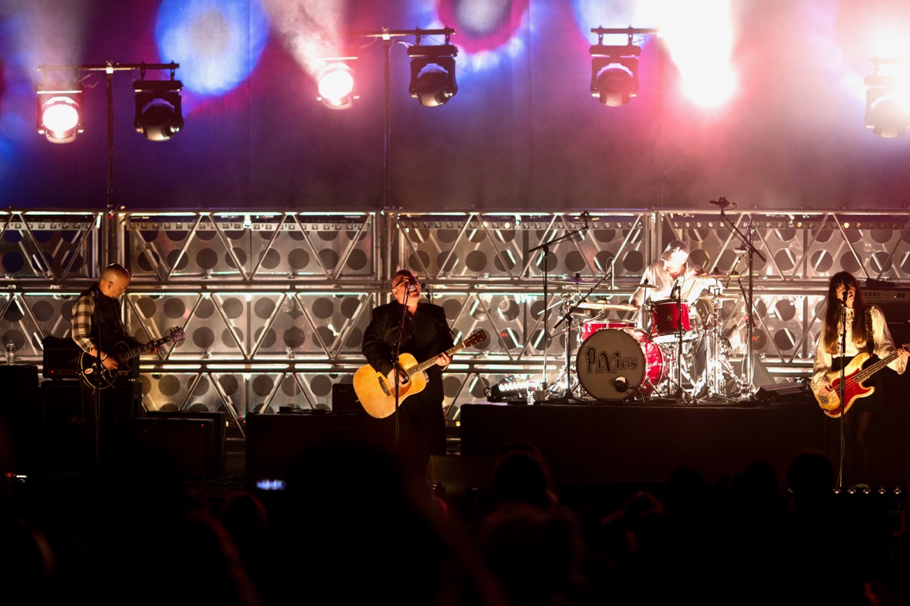 A little after 9, Black Francis and the band emerged to a super dark stage and started making some ambient sounds which turned into “Where Is My Mind?” and the crowd went wild, because that’s the one they all know (thanks Fight Club.) Eventually the lights came up, and they powered through LIKE THIRTY PLUS SONGS! I’m not exaggerating. It was a marathon of wacky, moody, indie surf rock. They played the songs we came to hear: “Surfer Rosa”, “Monkey Gone To Heaven”, “Velouria”, “Debaser, “Bone Machine”, “U-Mass”, and a decent smattering of tracks from the raison d’etre, Head Carrier, including the lead single “Um Chagga Lagga”. So many songs, you guys. And let me tell you, just because these dudes have been doing this for a long time doesn’t mean they’re sick of it. It may be their 30 years of band practice talking, but it was like I was listening to one big long mixtape. It all sounded great, and Frank can still screech like it’s 1989.