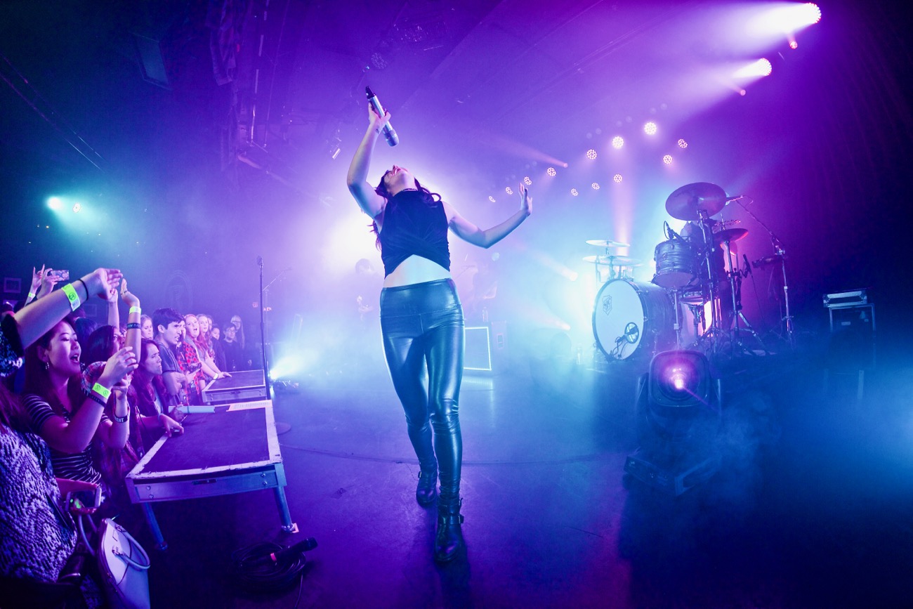 With anthemic choruses, and an energy that harkens back to early Paramore, this Against The Current played the intimate Roxy Theatre like a stadium venue. The band’s lead singer, Chrissy Costanza, a petite gal who can’t be more than 5′, packs performance punch with veteran stage presence. Her small body leaps and bounds across the entire stage, and her movements are large and dramatic like the music that plays behind her as she sings.