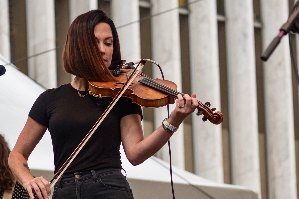 Amanda Shires kicked off the weekend at Lincoln Center’s Hearst Plaza with a set that placed her superb fiddling and songwriting front and center. Ms. Shires was accompanied by Zach Setchfield (guitar), David Guy (bass), and Jerry Pentecost (drums), who added propulsive, electric textures to the vivid narratives that hint at vulnerability. It’s a combination that she works in a compelling way. Take “Harmless,” for instance, from My Piece of Land (2016). There’s a searching, yearning quality in the vocals as Ms. Shires explores, in grainy detail, the ambiguous line-walking of infidelity.