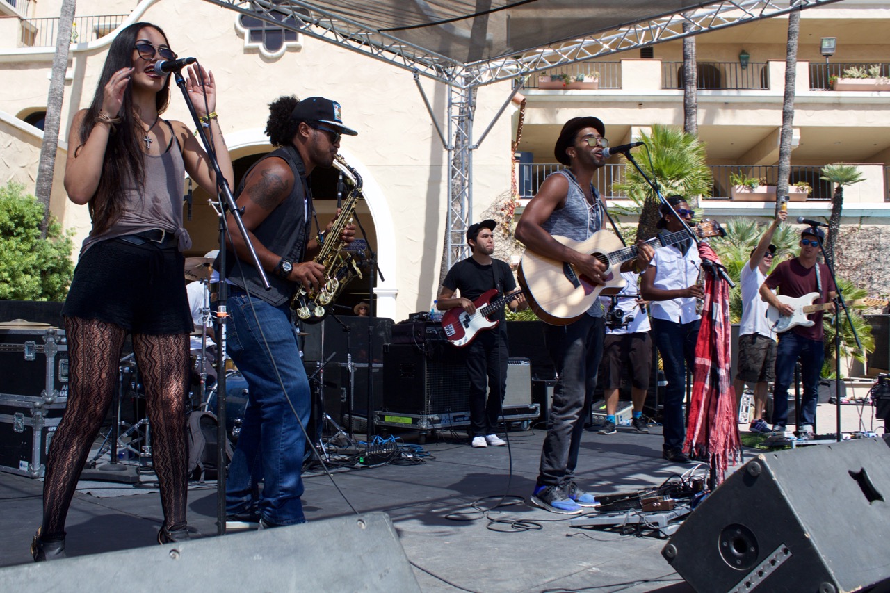Sounded nighttime loungy but felt good in the Del Mar sun. Cocktail music but not too light. The seven member band with two backup singers produced a rich, full sound. Kinda Dave Matthews-ish but with a little more funk.