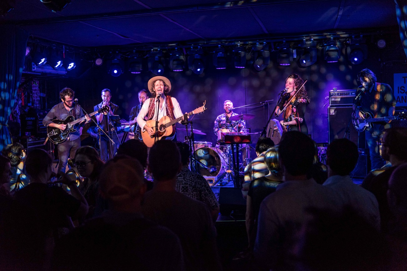 Suz referenced Charlottesville on Wednesday night as David Wax Museum played a spirited set to a packed Mercury Lounge. The band — in addition to David and Suz, Ben Kogan (bass), Danilo Henriquez (percussion), the touring horn section of Alec Spiegelman and Cole Kamen-Green and guitarist Anthony da Costa — celebrated their tenth year with a set showcasing an amalgam of border-crossing folk, rock, and electronics-embellished pop. Somewhere in the midst of the joy and boundless energy that is a DWM show (check out this video of Born With A Broken Heart, filmed at Newport Folk Festival) — the colorful bursts from the horn section, the handclap percussion, and a song performed on the floor, surrounded by fans — it occurred to me that music doesn’t have to style itself as protest art, or even be overtly political in content, in order to engage the pressing issues of our day.