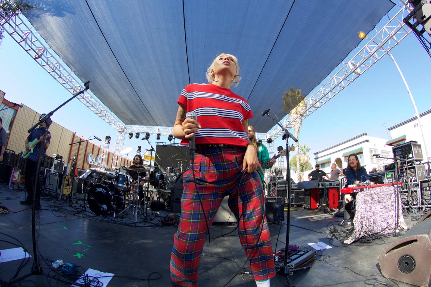 The party was in full swing when we arrived about five songs in. The overwhelming excitement, both on and off the stage, was instantly contagious, and without even realizing it I found myself bouncing like a fool with a big grin on my face. I was not alone. The audience danced with fervor and sang along, fully engaged with the powerful performance of Jessica Hernandez & The Deltas. Each of the six members brought a unique style and energy to the performance — and what a performance it was. Jessica Hernandez may be small in stature but her big booming voice and large presence filled the stage. Boy, does Jessica sure know how to play to an audience. Her style, especially in showmanship, reminded me of Gwen Stefani from the No Doubt days.