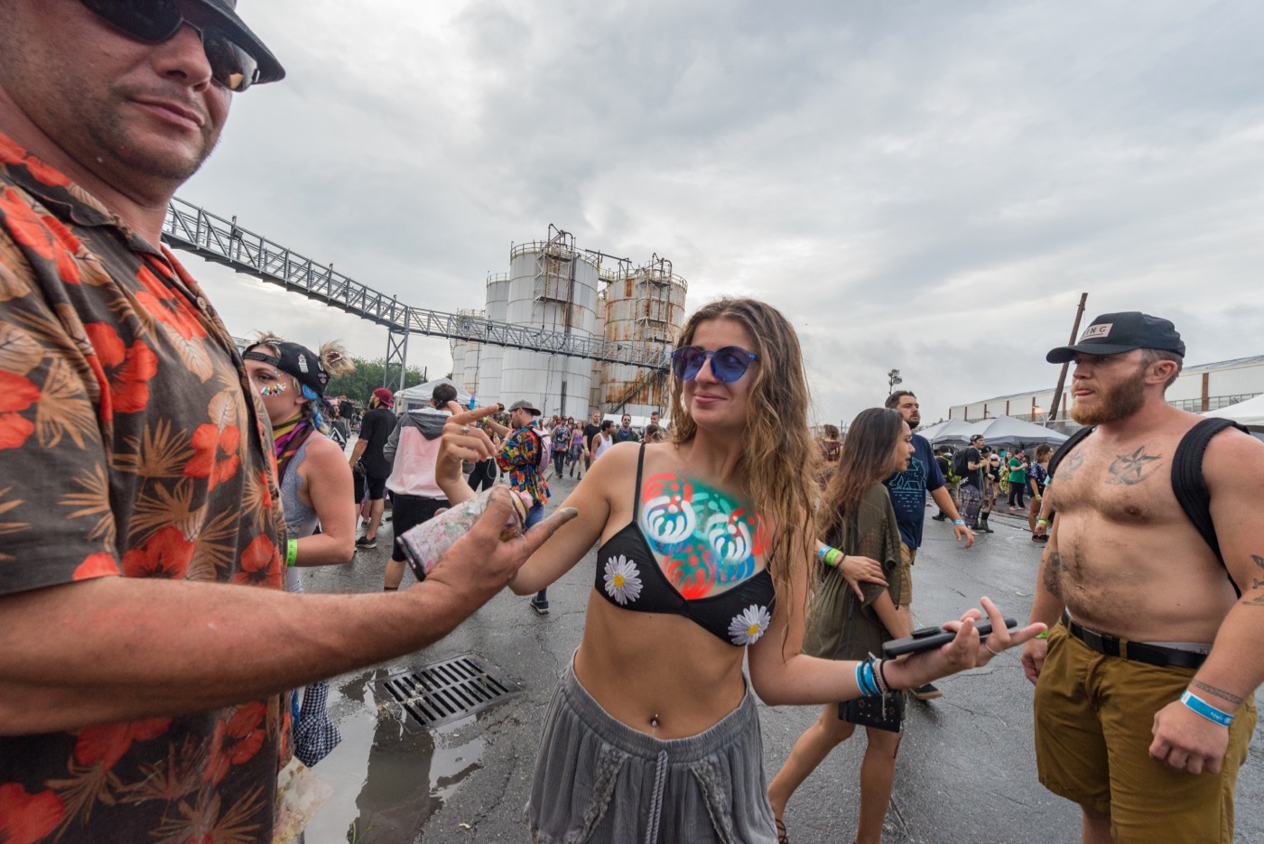Thankfully, there was a huge warehouse on the grounds, where they moved the Water Stage, that could fit everyone in attendance – so avoiding the occasional downpour was pretty easy. Additionally, there were massive silos teeming with artwork and fembots – actresses that cosplayed as artificial intelligence. I love when there are deeper layers within a festival that are just waiting to be experienced.