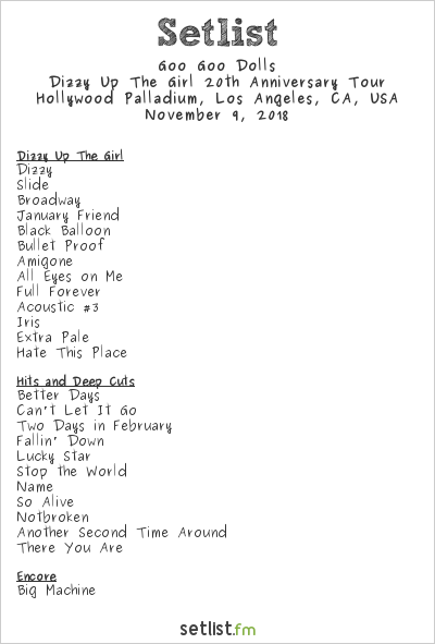 HOLLYWOOD, CA- With all things 90s back in fashion, it seems appropriate that the Goo Goo Dolls went on the road to celebrate the 20th anniversary of their biggest album: Dizzy Up The Girl. Their concert at the Hollywood Palladium appealed to die-hard fans from beginning to end: they played the entire album, followed by a mix of hits and more obscure tracks.