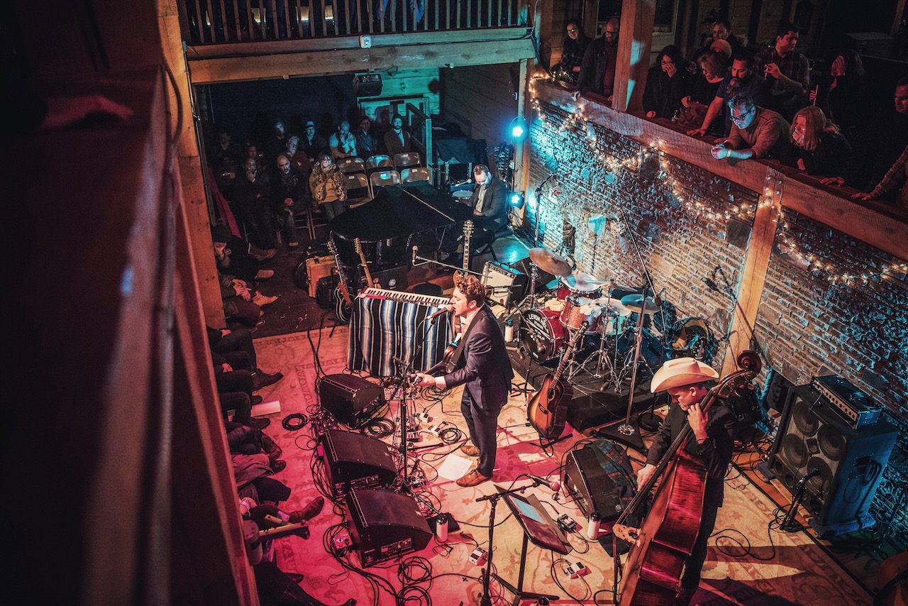 Any room filled with song feels shielded from the cacophony outside the doors. But something about Levon Helm Studios is particularly sacred. It’s in the DNA of the venue, of course, designed by the drummer and vocalist in the standard-bearers of Americana known simply as “The Band”. (“Inevitably, they’re going to be identified as Bob Dylan’s band, but not even Dylan calls them that,” Rolling Stone wrote in 1968.) You’ve heard of the famous Midnight Rambles, but perhaps you didn’t know that the first record cut in The Barn, in 1975, was by seminal bluesman Muddy Waters. The magic of the space is enhanced by contrast from city venues with their metal barricades and warehouse feel. There’s no L train re-route to deal with, either — just my ace photographer friend Anthony (whose work you should check out here), driving us through rain that was turning into snow, one car headlight out, the remaining solitary beam lighting up a small sign: “Plochmann Lane.”