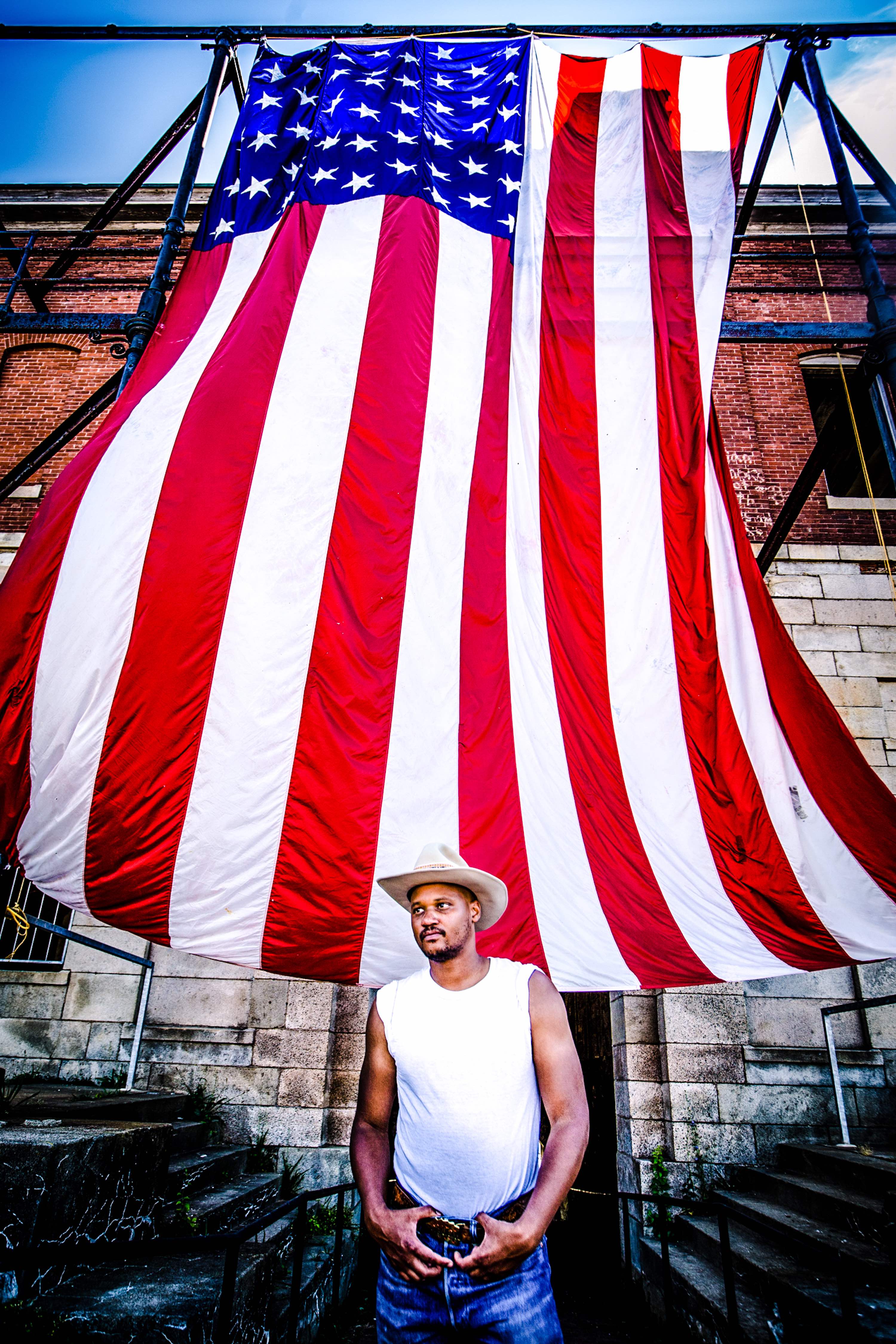 I’d been eyeing the spot all weekend. It was sectioned off by security but I figured a long lens would do the trick. “There is a giant American flag over there.” I suggested. Livingston didn’t miss a beat. “Let’s go.” As we walked over I see him approach the gate. Livingston is genuine and he carries something with him that we should all aspire to have. I don’t know if it is a learned ability or if it is just something he has always had, whatever or however it is extraordinary; a super power. He has an ability to look someone in the eye and make them know, he knows they are important. We were through the gate in no time and there we were standing in front of a three story american flag and I was beyond giddy that he was wearing a cowboy hat. This spot, this moment, was for him. It was the image that summed up the festival to me, an iconic festival of America showcasing emerging talent and I haven’t even gotten to how amazing Son Little’s set was yet.