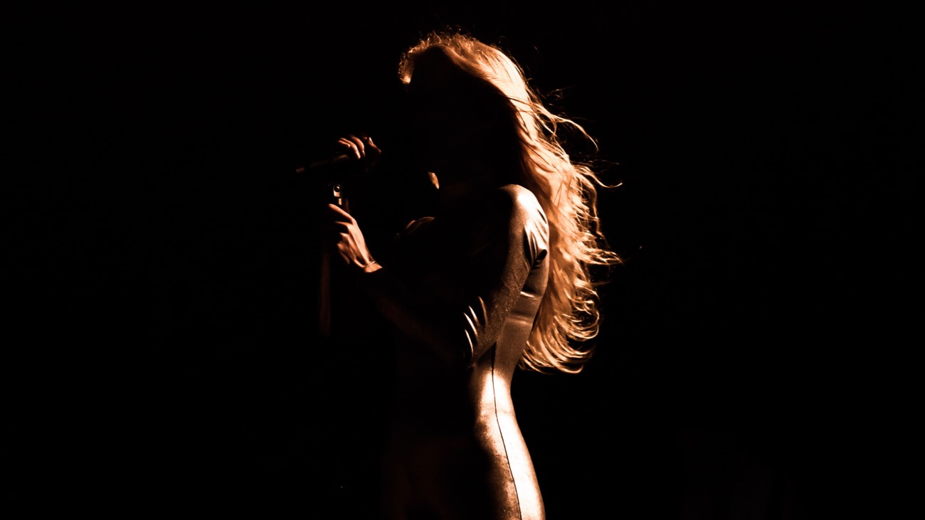Jonna then changes into yet another costume. From her music video “play”, she wears a wool coat that looks like long, gray hair or strands of wool. Everyone loves this track, and the outfit. She dances across the stage, putting the wind through her “hair”. At the end, she loses the costume and pauses again, “This has been a dream for a long time. How are you?” The audience screams, shouts, and I wouldn’t be surprised if some of them cried. She sends love in her hands by embracing her chest and reaching out to the crowd. “I brought you something special tonight. You’re the first to hear a new song”. Zola Jesus walks out, and similar to Vander, she adorns all black in contrast with Jonna who has always been wearing bright silver or white. The crowd goes nuts and we all lust after a new track from our favorite artist. Together, they perform “MATTERS”. It’s a slower, darker track, but one that resembles old, Nordic women vocalists who do “kulning”, or “calling / chants”. I feel like this is something that I would hear during a devastating Viking battle on a film soundtrack. It’s cool. And it ends with a loud audience member shouting “MORE”! Jonna simply replies, “Now that’s Jesus for you” as Zola exits the stage.