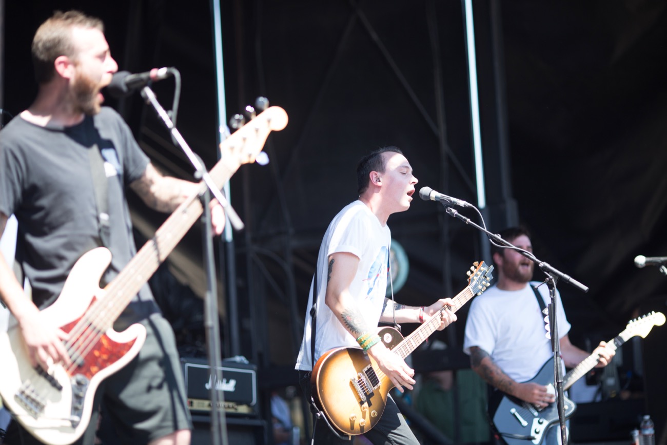 Once the legs were liberated, we settled into our first set of the day: The Flatliners. I had never listened to them before, but somehow their name sounded familiar (perhaps purely because of the 1990 thriller starring Kiefer Sutherland and Julia Roberts, but whatever). I was pleasantly surprised by the Canadian four piece– very light-hearted, super bangin’ jams reminiscent of Florida’s Fake Problems. Although I didn’t know who they were initially, I was glad something told me to watch their set. It felt like some sort of punk rock sing-along that I wanted desperately to be apart of.