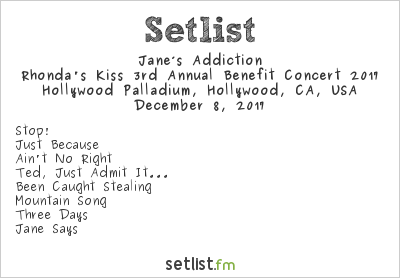 After “Three Days”, Perry thanked the audience and the band walked off the stage to allow a Rhonda’s Kiss rep to walk on stage to auction off an autographed guitar (autographed by the band and Jerry Cantrell and sold for $10,000). Following the auction, the band came back on stage to perform what Perry dubs the “Jane’s Addiction National Anthem”, “Jane Says”.