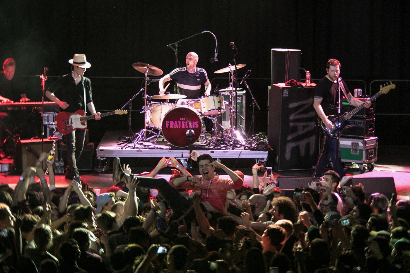 Almost eleven *cough, cough* years and four albums later (their latest offering, “In Your Own Sweet Time”, is amazing), they are still a mainstay on my favorite playlists and a must-listen on road trips. I believe their tracks are timeless because every time I make it out to a Fratellis show, I never know what demographics will show up and I’m always happily surprised by the diversity of the fans that do. The Brooklyn Steel show was no exception. This photo below is going in Jame’s high school yearbook (yes, the champion being raised above the crowd) and I took it while sandwiched between one very well-educated 60-year-old Scottish man and an Estonian couple who came in from Connecticut to catch the show.