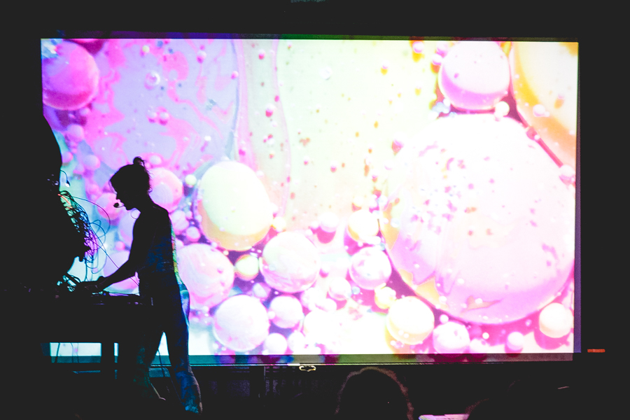 Los Angeles, CA- If the furthest fathoms of the sea had a soundtrack – if a journey beyond the event horizon of a black hole could have a theme – it would be composed by Kaitlyn Aurelia Smith. With organically driven visuals projected behind her in full technicolor, Kaitlyn sets a mood that is an absolute perfect match with the synthesized compositions that she performs. Unlike other artists performing similar music, Kaitlyn isn’t beholden to merely playing pre-recorded loops with her eyes hypnotized by the screen of a laptop.