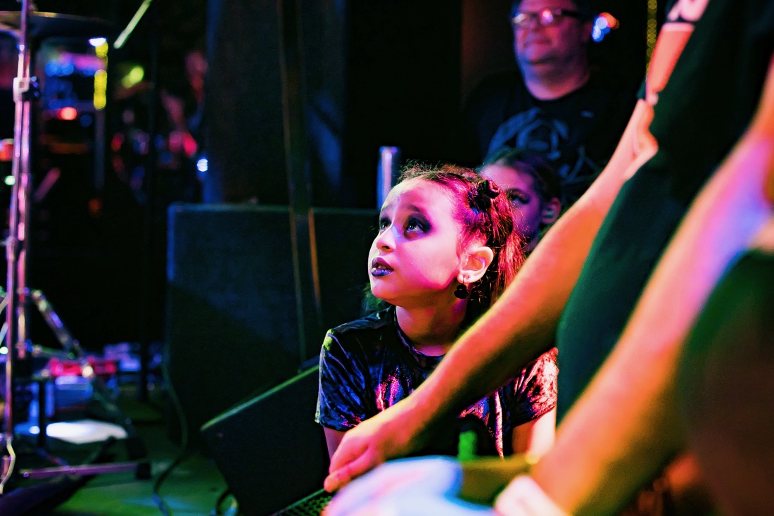 Flanked by Elizabeth Carena (vocals | keyboards) the synchronicity and artistry of the performance they are creating is something I love about glam rock in general, but what these ladies do to perfection is “cry pretty/cry ugly”. Its climax is never more apparent than when Courtney will drench water on her face, releasing the eyeliner and showcasing black tears in a back bend to the audience revealing the passion and pain. They are strong. They are fierce. They are beautiful. They have no fear. They are inspiring the next generation. (Seriously. The most awesome little girls were dressed as the band and were front row for this show and from what I witnessed at the show, ladies, the future woman of this world are going to be SO INCREDIBLE!)