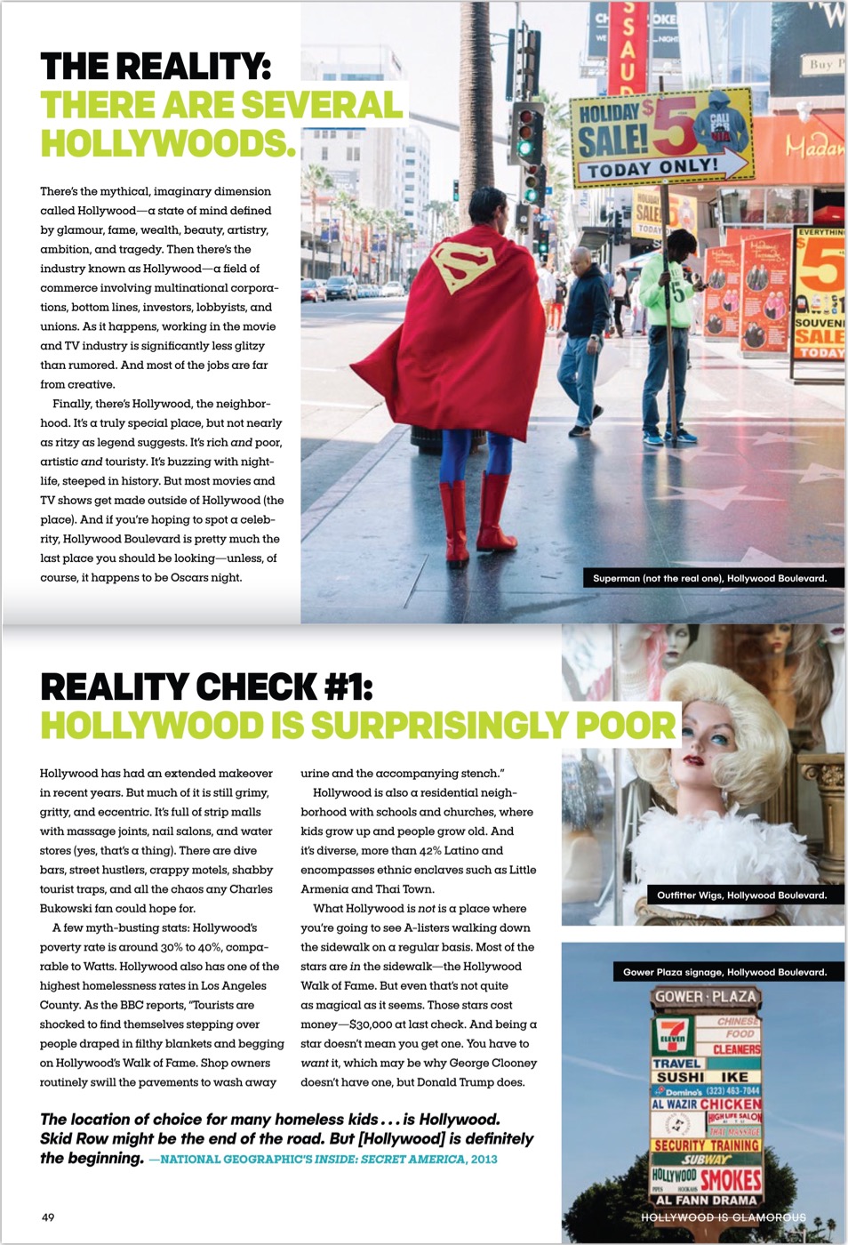 Jen stated she wanted to create “substantive editorial content and showcase it in ways that are not so serious or conventional”. This is (Not) LA is the perfect example of this sentiment. Jen Bilik and co-writer, native Angeleno, Kate Sullivan, along with the rest of their team wrote an informative colorful 168 page book that carefully organized the book into 18 myths of L.A. and 8 spotlights of L.A. The 18 myths are tackled head on and torn to shreds with informative and well researched reality checks. Myths such as weather, food, traffic, air heads, the biz and 13 other myths are all discussed in a cohesive manner. It was amazing to learn things I myself didn’t know, such as: the cochlear implants, stealth fighter, and firefighter paramedics all were created in Los Angeles.