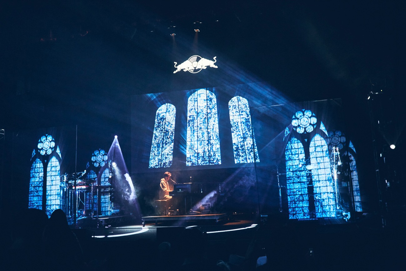 On each side of the stage there were two different drum set ups sitting behind really cool holographic type screens. As he played behind each one, crystal clear images were projected onto them. In the middle of the stage was a piano. Lido is literally running back and forth between instrumental set ups the entire show.