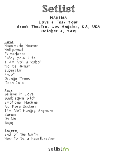 Marina brought her Love + Fear Tour to The Greek Theatre in Los Angeles, and her fans came out in droves to bear witness to her musical rebirth.