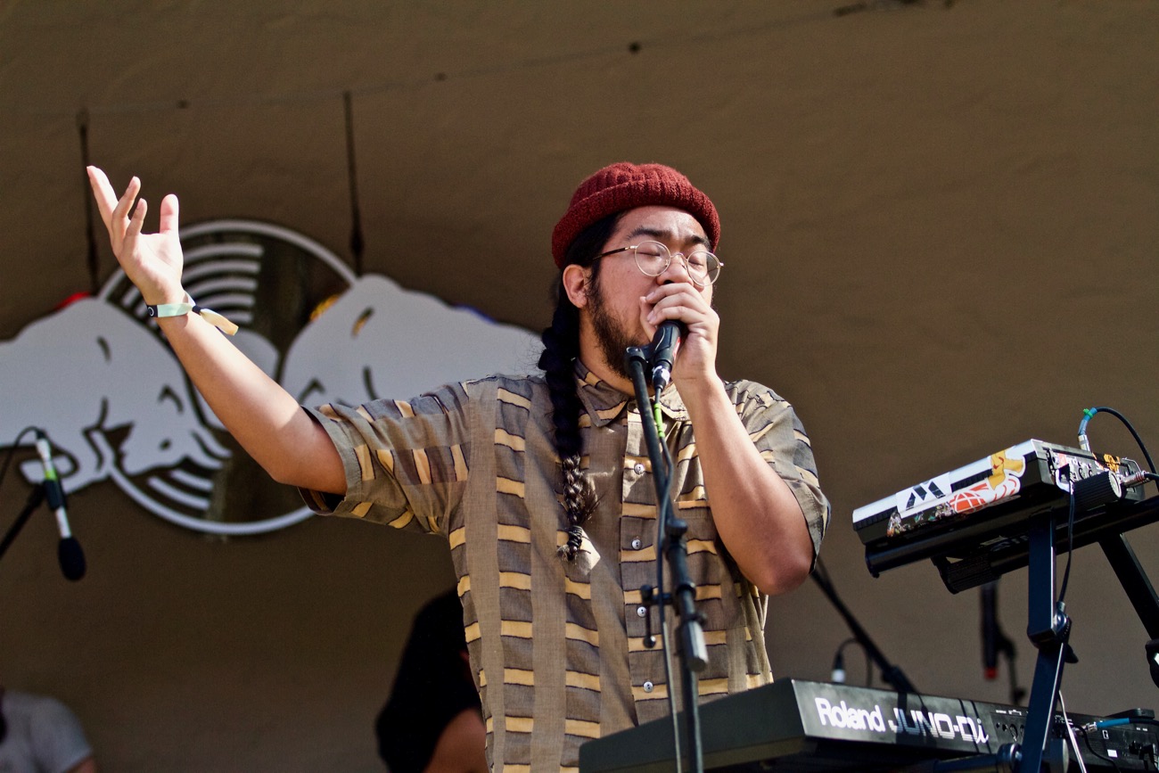 As soon as Mndsgn took to the stage, the crowd was already amped to see him perform. He hadn’t even started performing yet, merely setting up for his set, and the crowd as already cheering and chanting his name with tons of energy.