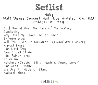 Later, there was a particularly uncomfortable moment after he asked for requests, then said he couldn’t hear them because of his deafness because he’s “like Mr. Magoo.” When an audience member responded by shouting a suggestion, Moby cracked, “Thanks for yelling in the Disney Concert Hall — I don’t come to McDonalds and yell when you’re working.” There was an audible collective gasp from the audience. That kind of dig wasn’t a good look and also made no sense in this context.
