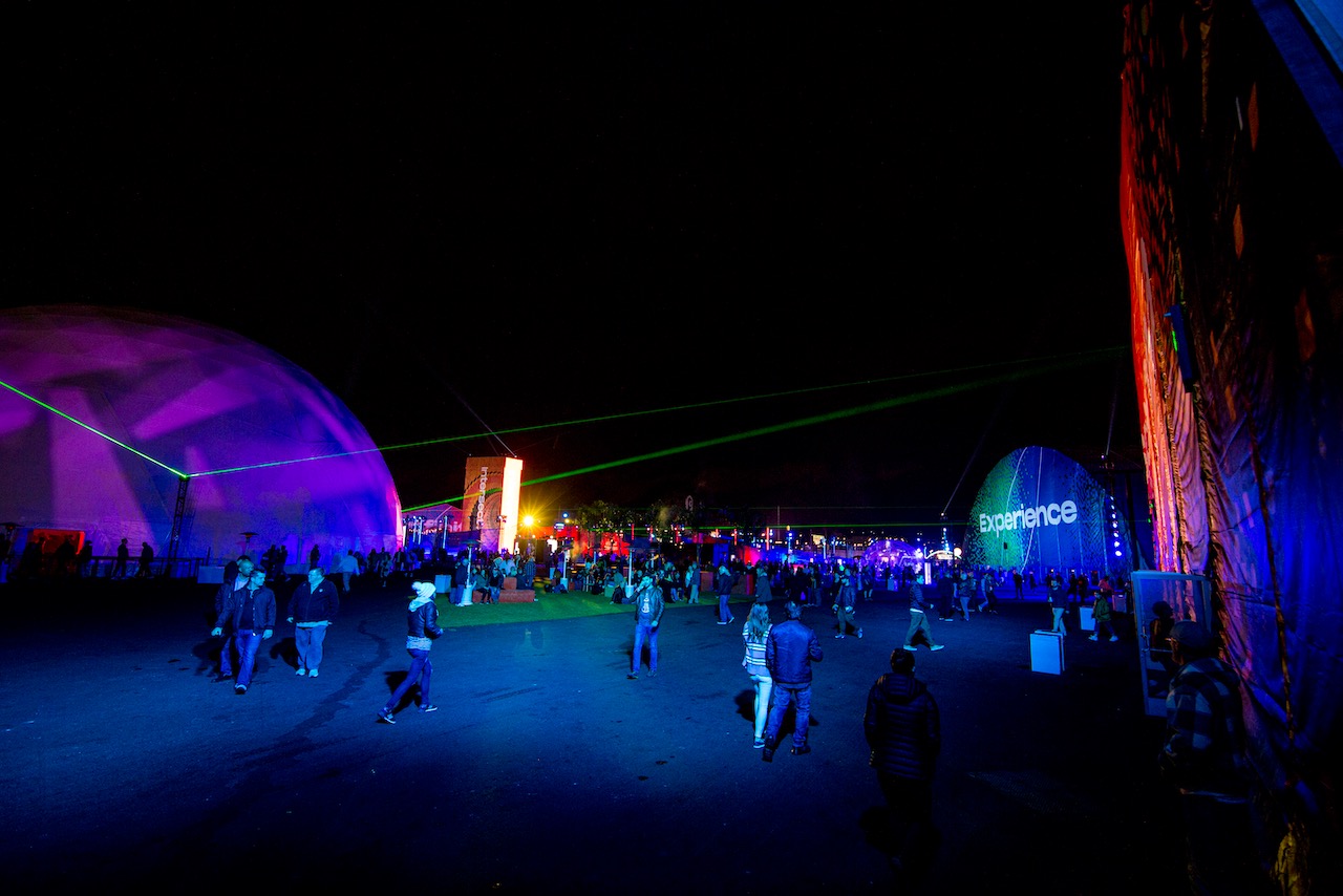 On the festival grounds, there were four tents built for the occasion, three of which showcased music, and a fourth ten designated the “Experience” tent that was, in essence, a playground for adults. With a full arcade of free-to-play games (both classic and modern) and a huge play-fort featuring ball pit filled with over 200,000 balls, you could easily lose track of time and run around like a kid in a candy store. But there were also immersive art installations in the Experience tent created by Nonotak (a performer at the festival) that hypnotized you as lights and lasers danced around a blacked-out room (see video samples below).