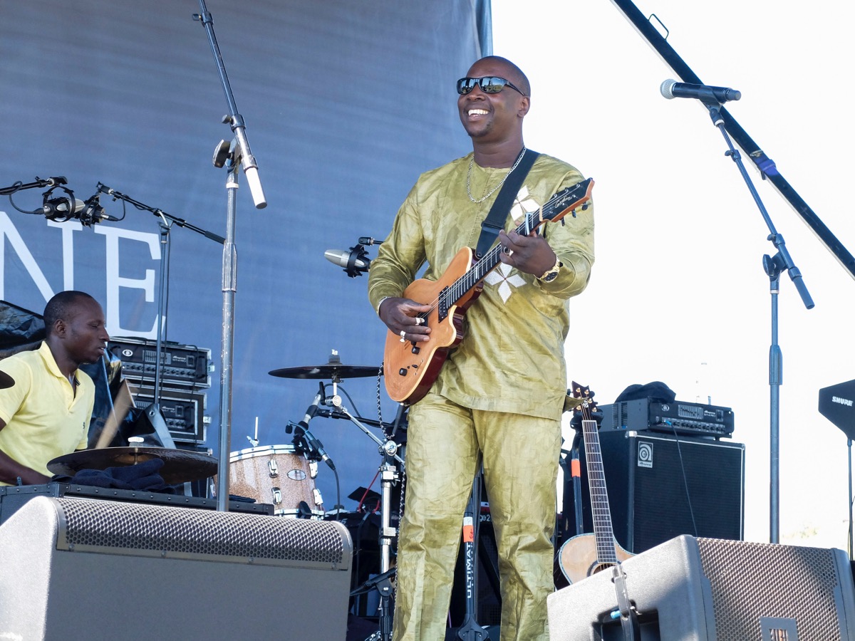 West African guitar hero Vieux Farka Touré, son of Grammy-winning Malian artist Ali Farka Touré, kicked off the day’s music with an impressive set that should earn him festival slots closer to sundown than the start of the day.