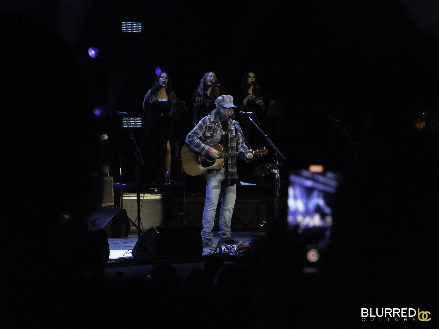 Clad in an oversized flannel shirt with a railroad hat obscuring his head, he humbly paced the stage, performing some of his most recognizable acoustic tracks while playing his signature harmonica lines on classics like “Heart of Gold.” Understated but elegant, Young’s set was stirring, and so very typically Neil Young.