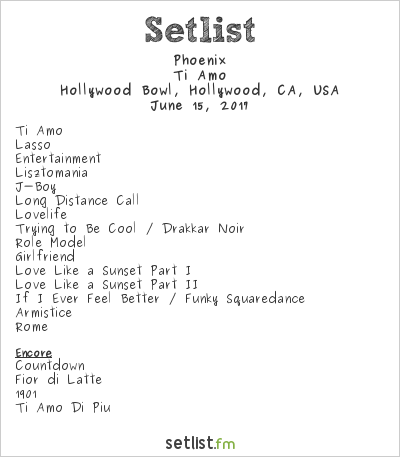 LOS ANGELES, CA- When Phoenix lead singer Thomas Mars addressed the audience at the Hollywood Bowl with, “We’re very happy to be here. This is the best place in the world,” I’m fairly certain that each and every one of the fifteen thousand plus in attendance was feeling the same way. With a performance that not only consisted of spectacular stage production and a cadre of their most beloved hits, the performance emphasized the underlying themes of “love, desire, lust and innocence” embodied in the latest release, “Ti Amo”.