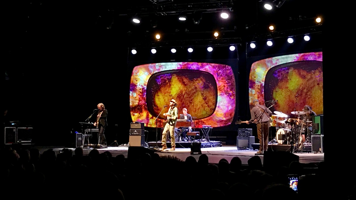 His live performance could be described as dizzying and soulful. Big LED screens projected behind him with psychedelic-like visuals make the casually-dressed artist, in loose jeans, a button-up, brown boots and full-beard, look like he is floating in outer space.