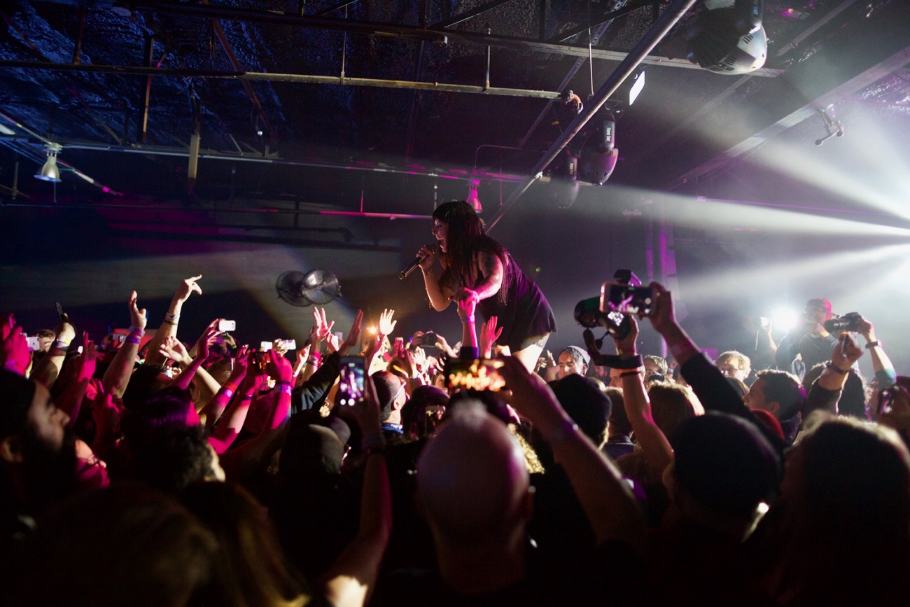 As Alexis riled up the audience to sing louder and dance harder, she invested her trust in them to carry her from the stage to surf the crowd. Everyone in the pit had their hands in the air to offer Alexis support. As she was lifted and carried about 7-10 rows deep, I recalled the two banners that they had draped over the huge speakers down stage that read “Loyalty” and “Keep Faith”. At that moment, both Alexis and the audience expressed their loyalty to one another, keeping faith that neither would let each other down. That moment embodied both of those sentiments, and it was a beautiful thing.