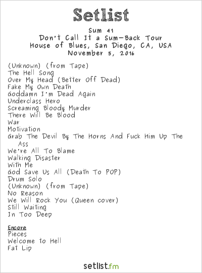 Sum 41 took the stage in San Diego last night to a humble and sold-out venue known as the House of Blues. The energy was palpable; for the crowd was ready, and the band was ready to deliver with due showmanship. It was splendid to see the fans embrace the new numbers as much as the legacy ones. From the very first song on their very first record ‘Grab the Devil…’ to their latest single ‘God Save Us All’, the Sums delivered a fantastic set-list dedicatedly and passionately to their fans, those both experienced and virginal to their music and live performances. Encompassing and confident was their performance; tried and true was their fellowship. The band remains as charismatic as ever.