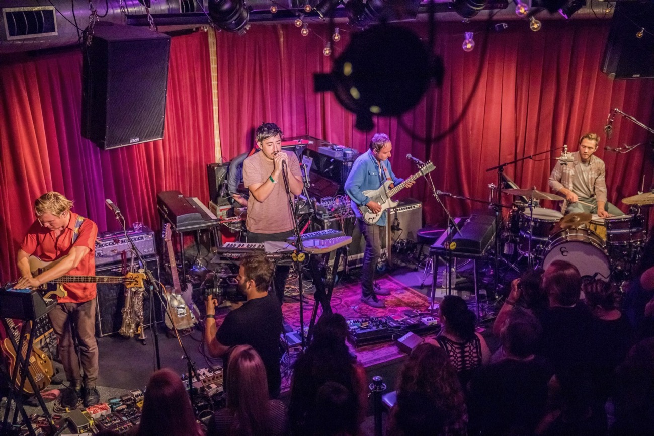 After the gracious host was done passing around his vocalized certificates of accomplishments to the studio and its alumni, it was time for the main course to be served. A bit of stage banter helped the polar bear break the ice of an entranced room, in which Ed Droste (vocals) joked about probably not being able to match the “sweaty, sexy night club,” vibe that Queens of the Stone Age had apparently brought to a previous session. He wasn’t entirely wrong, as we were to find out, that it would be an entirely different kind of sex. The kind that climaxes in such an augmented way, where it leaves the suitors involved in the exchange in an accidental relationship, lovingly befuddled over what had just happened and how it had even gotten to that point. The laughter dissipates, and queue the docile chimes to take the hands of curiously bobbing heads, and lead them as shepherds to collectively become a swaying herd.