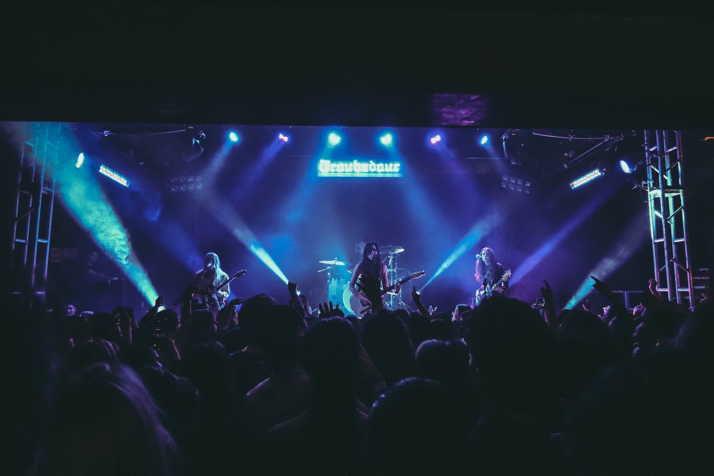 Cristal’s onstage performance energy was just infectious that Wednesday night. As front-woman and lead vocalist for the band, she commanded the stage with a clear confidence, owning the stage, parading across the stage, mimicking hand-signs to their lyrics, reaching her hands out and jumping with the crowd. She looked over to Katie on the guitar and jumped in excitement during her guitar solos, while McKenna held a steady bass-line and engaged with the fans in front of her; Alisa also provided thunderous drumbeats and owned the back-section like a pro.