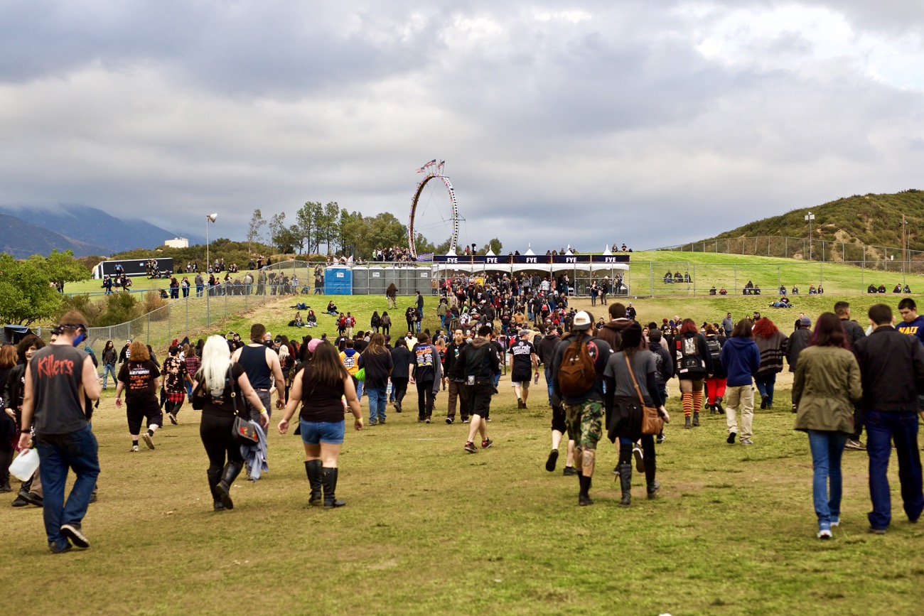 But the music aside (some of which we’ll cover with individual performance posts embedded below), being a part of the crowd was an experience in and of itself. It was visual eye candy for me, as I got to admire patrons wearing all black, adorned with chains, ominous masks (taking a cue from Slipnot), spikes and chokers. Numerous attendees wore t-shirts with the band they were most excited to see perform (or not scheduled to appear like Slipnot) emblazoned on their chest with a striking graphic. Some guests even took it a step further wearing intricate “dark” costumes, one of which sparkled with black stones and devil’s horns. My personal favorites were leather and jean jackets with band or political patches stitched all over them them.