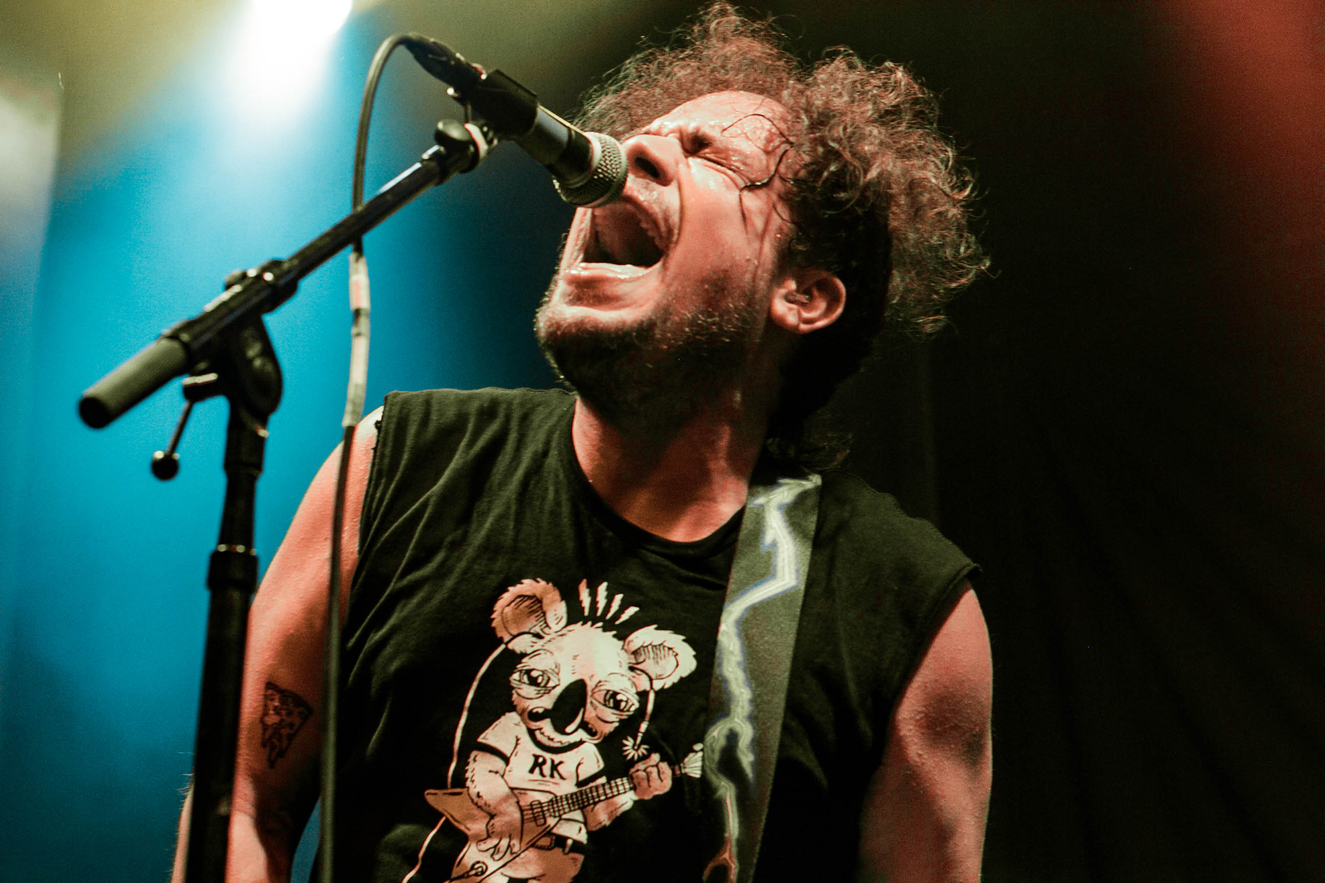 Due to heavy traffic, I was running a tad late. My photographer concerns were assuaged by a fellow photographer’s reassurance that there was photo pit for us this evening. A HUGE indeed as The Regent usually doesn’t have one. After rushing through the crowd to get to the front of the venue, I looked up and noticed a giant sign hanging behind the opener, Rozwell Kid, that read “Jeff’s Up Next”. Little did I know that this subtle announcement was just a glimpse into the goofiness and casual happiness that would define the evening’s offerings.