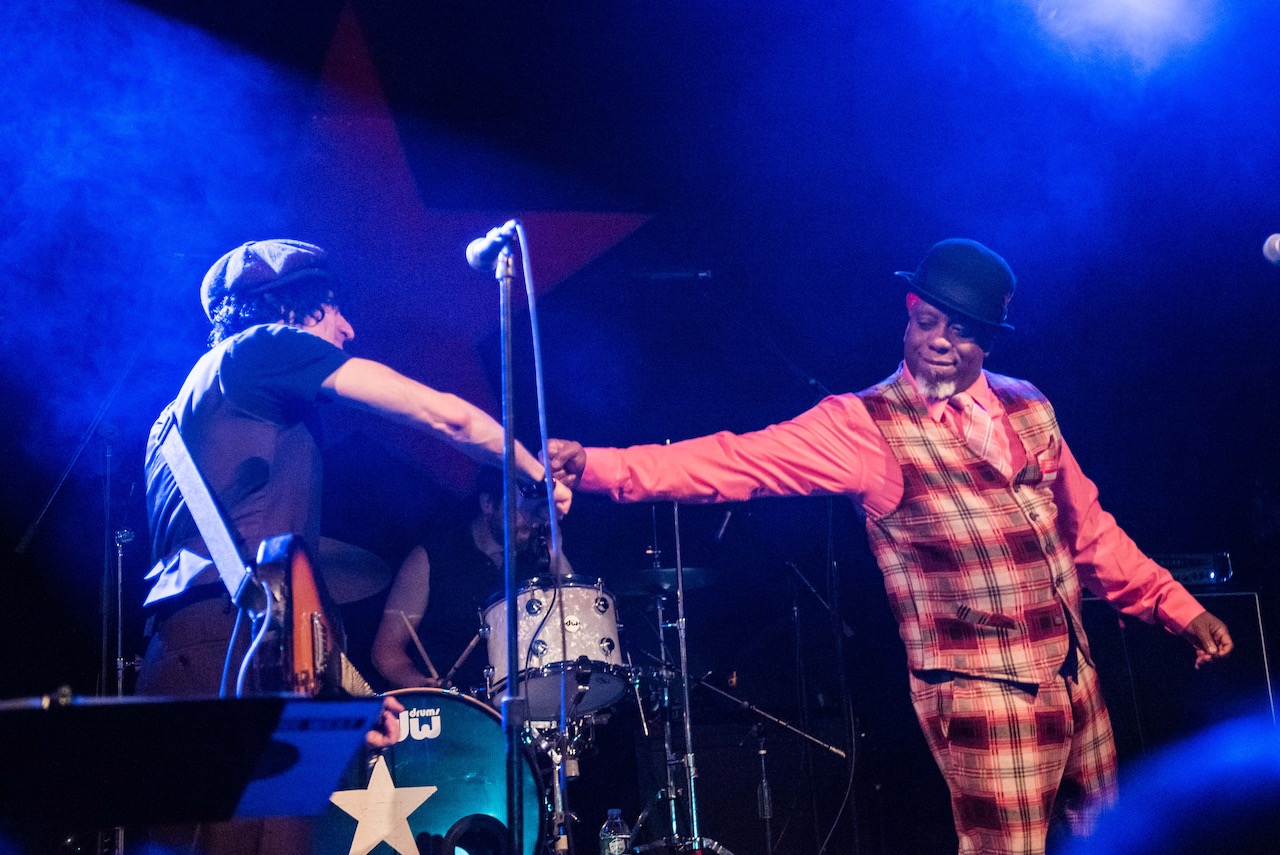 Next up was Diane Gentile for “Lovers Rock,” Miles (of Outernational) for “Four Horsemen,” Fiona Silver on “I’m Not Down,” and Corey Glover returning, along with Vernon Reid, for “Revolution Rock.” And to close out the album, Adam Weiner — the firecracker at the center of Philly-based rock band Low Cut Connie (one of my favorite live acts) — had us singing along the refrain for “Train in Vain.”