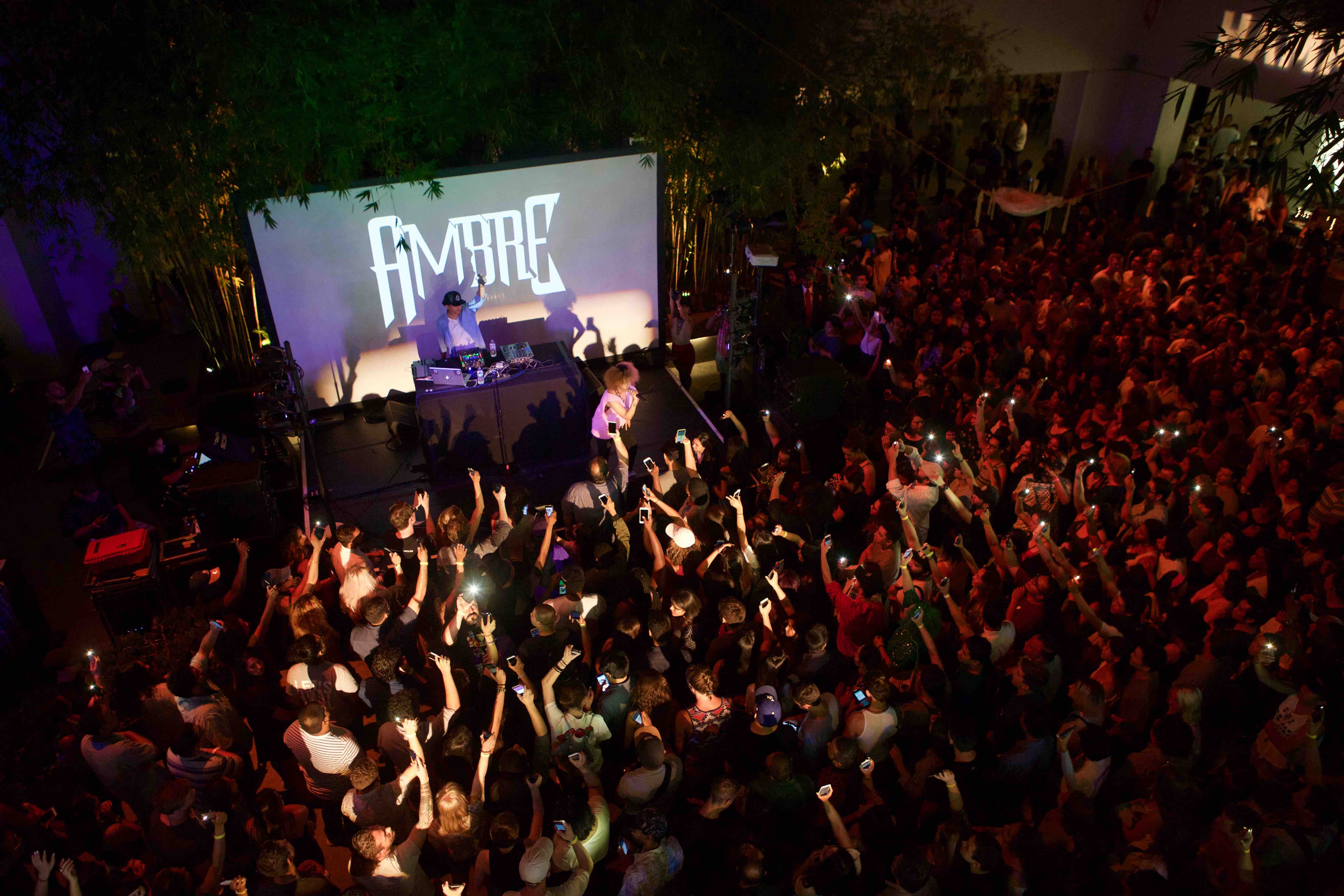 An attendant notices my pink wristband, and I’m eventually escorted to the VIP section on a small bridge connecting the opposite ends of the upstairs area. I look beneath me, and to state the obvious- it’s packed. The masses of people move together, like a herd of cattle rushing the tiny stage before them. It makes Coachella look like milk and toast. This is truly the most crowded, and honestly, one of the coolest concert venues I’ve ever attended. I’m now thoroughly convinced that every show hereafter should take place in an open space art museum.