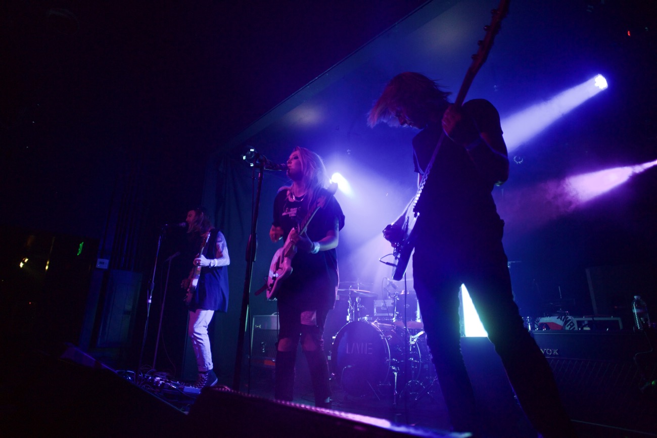 Last night I had the good fortune of attending LAYNE’s set at the Echo. As per usual, I scurried over from my day job to see a band that I’ve been hooked on since my colleague, Derrick Lee, had introduced me to their music. I showed up way too early, and saw LAYNE hanging out in their van in front of the doors. Wanting to avoid full creeper mode, I went for a walk around Echo Park. Nothing exciting happened, but roughly an hour later, I was front and center to the stage.