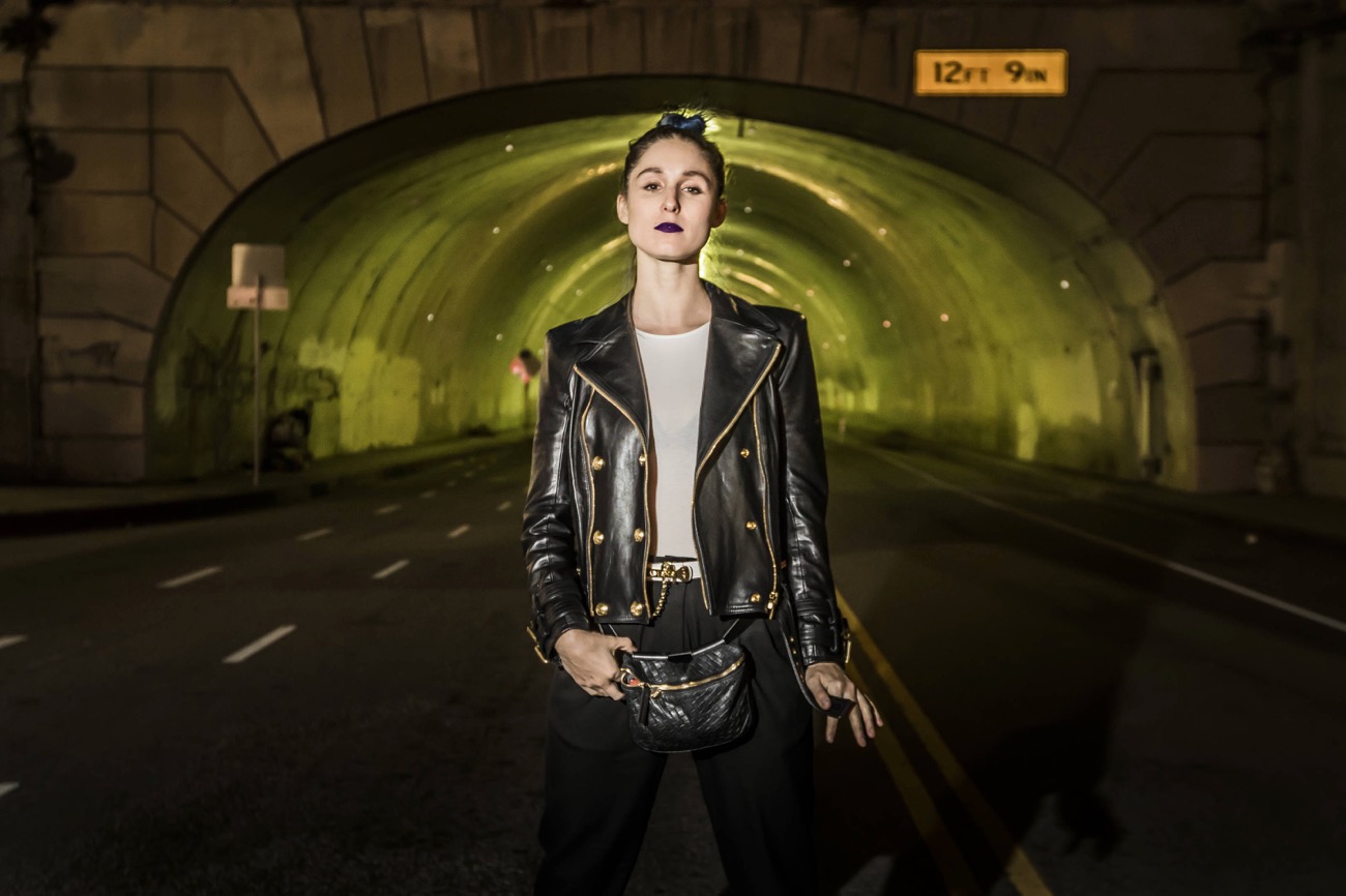 The next artist brings a little more heat. When Francisca Valenzuela takes the stage you immediately feel a stronger presence. With a tall lanky frame in a tight leather jacket, she looks kinda like Cece’s Russian model roommate in New Girl. But unlike her television doppelganger whose skills are limited to un-PC insults and imbibing vodka through a non-oral orifice, Valenzuela is a super talented author, clothing designer, singer, model, and multi-instrumentalist musician. In some circles, she’s most best known for her poetry, where her credentials are legit.