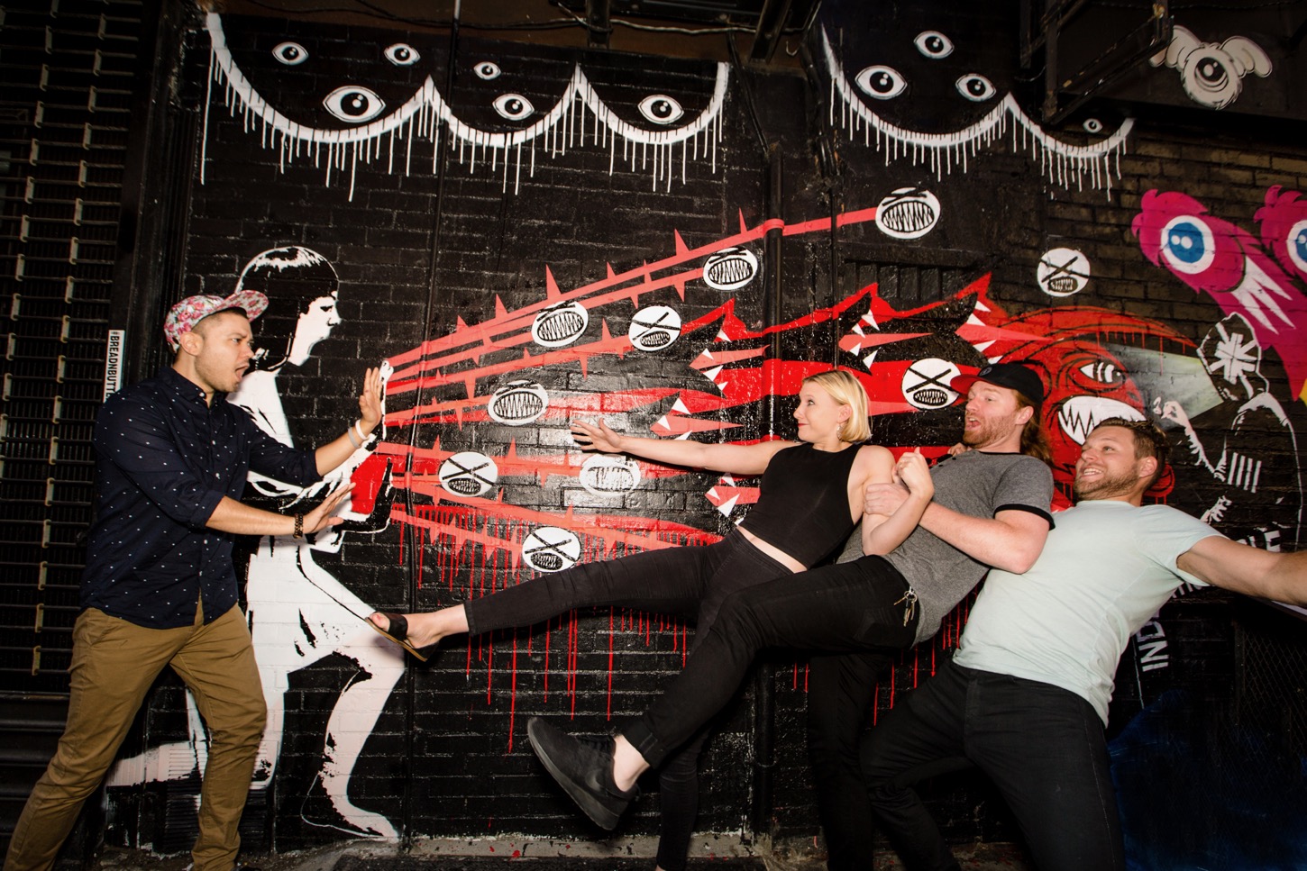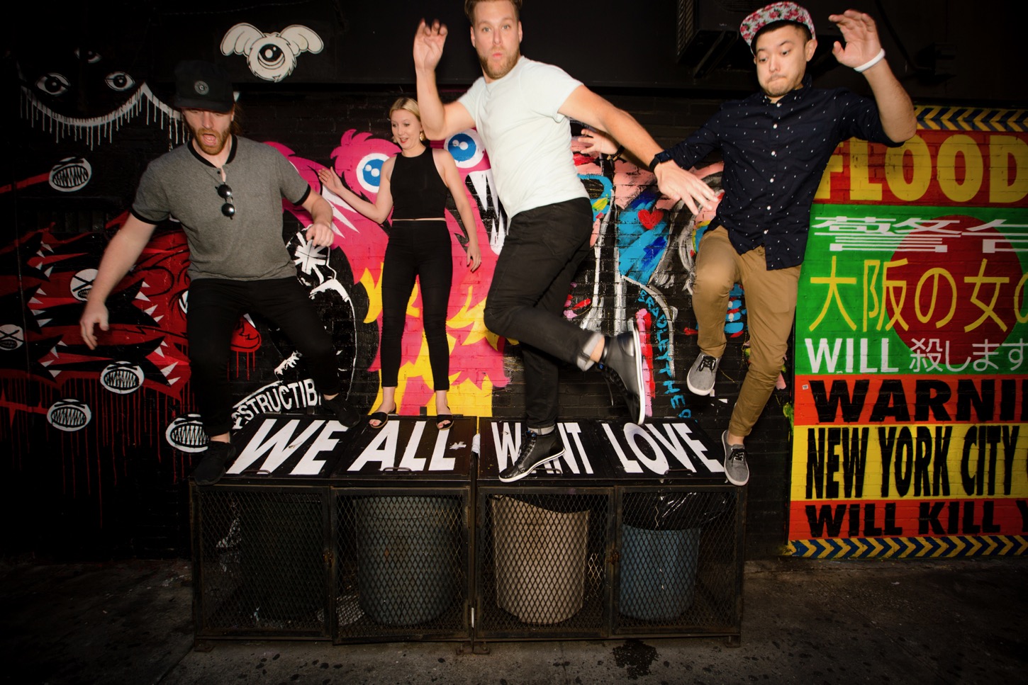 They were also up for pretty much everything including climbing up and jumping off garbage bins as we walked around the east village finding locations for our photoshoot. (Granted these were some really artsy garbage bins and read something far too close to the sentiment of their track “Give Me Something To Love”.) But the point is they were ready and willing to commit a tiny (I swear it was just an itty bit) petty crime for the sake of art and laughs; and casually pretended to do no wrong as we meandered towards the next location.