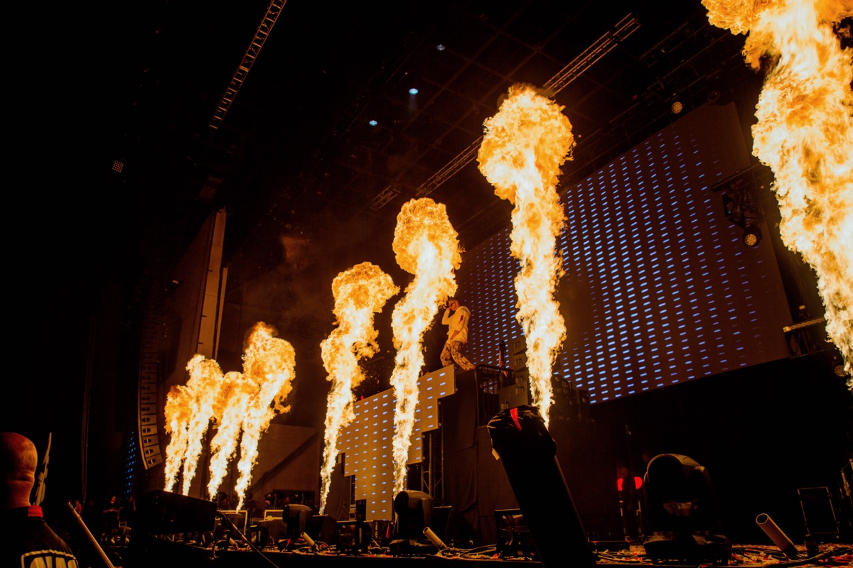 Accompanying his sick music at Hard Summer was stage production that literally lit up the night. Flamer throwers … mother f’in flamethrowers, shot huge flames from the stage in perfect synchronicity with his music, and it was pretty mind blowing. That visual feast alone was worth the price of the Hard Summer admission.